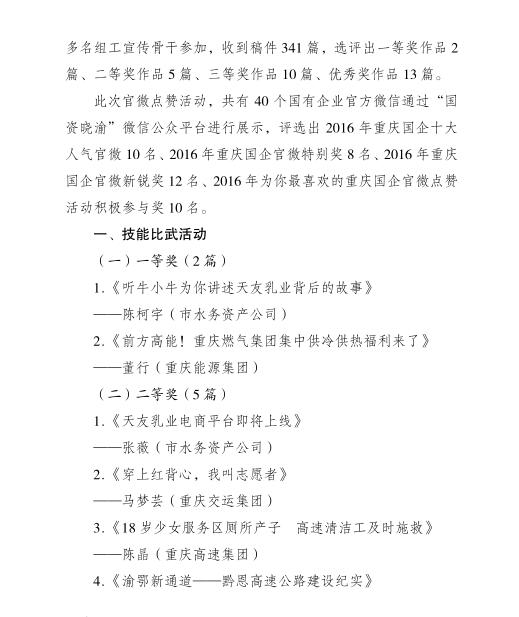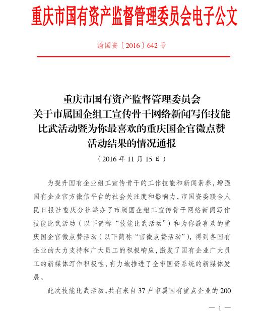 重慶國資網(wǎng)絡(luò)新聞寫作比武活動獲獎情況通報
